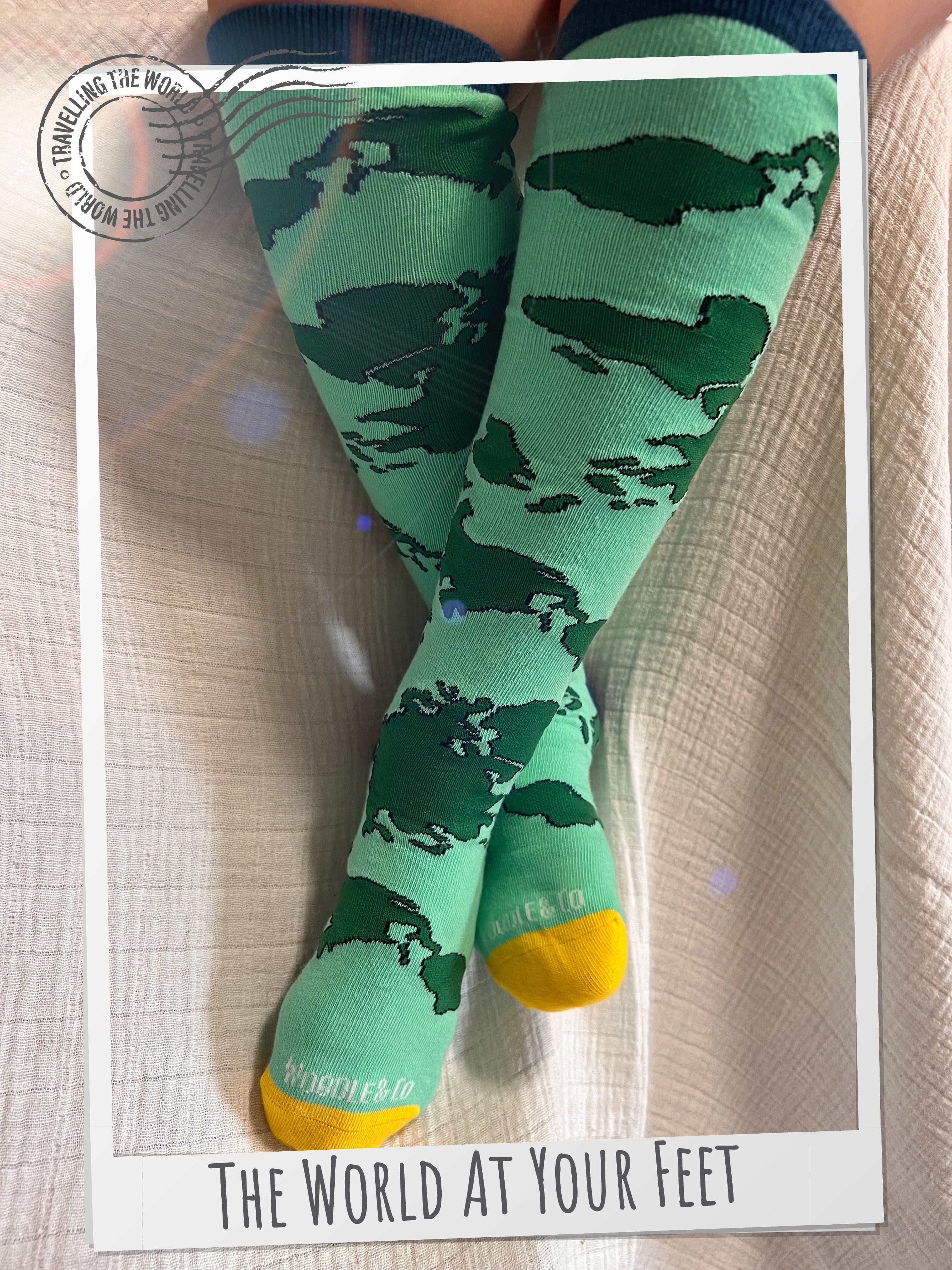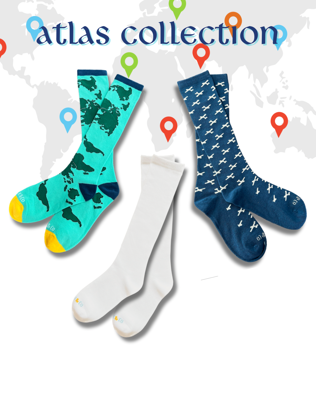 Atlas Collection: World At Your Feet/Altitude Adjustment/White - Knee High Socks - Perfect for AFOs and other orthotics