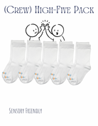 {Crew} High Five Pack – Seamless White Crew Socks (AFO-Friendly, 5-Pack)